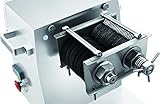 KWS KitchenWare Station - High quality stainless steel 4mm slicing thickness interchangeable cutting blades are available in different sizes in kitchenware station official website Slices 661 lbs of fresh meat without bone into pieces per hour or 11 lbs per minute Emergency stop push button and safety protection device for maximizing safety and accident prevention 1320watts motor power
