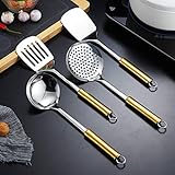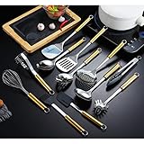 Kyraton - Durable and fashion design this cooking utensil set designed for functionality Kitchen utensils designed using topgrade stainless steel and utensil handle is plating with titanium gold make it looks glory and luxury It would raise up your kitchen decoration Premium quality the kitchen utensil set is made of high quality stainless steel it is durable and strong antirust It can last for years