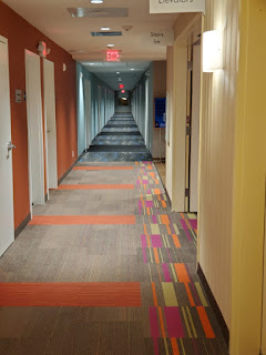 I'm on the third floor in the Home2 section. I walked from my room to the end of the hallway. Then I went down to the second floor and walked the entire length. Oh boy - not nearly enough steps. I took the stairs back up to the 4th floor and walked back the other way. I had to do that about 4 times to get 1,000 steps!!! Oh my goodness - what we will do to keep up to a goal.