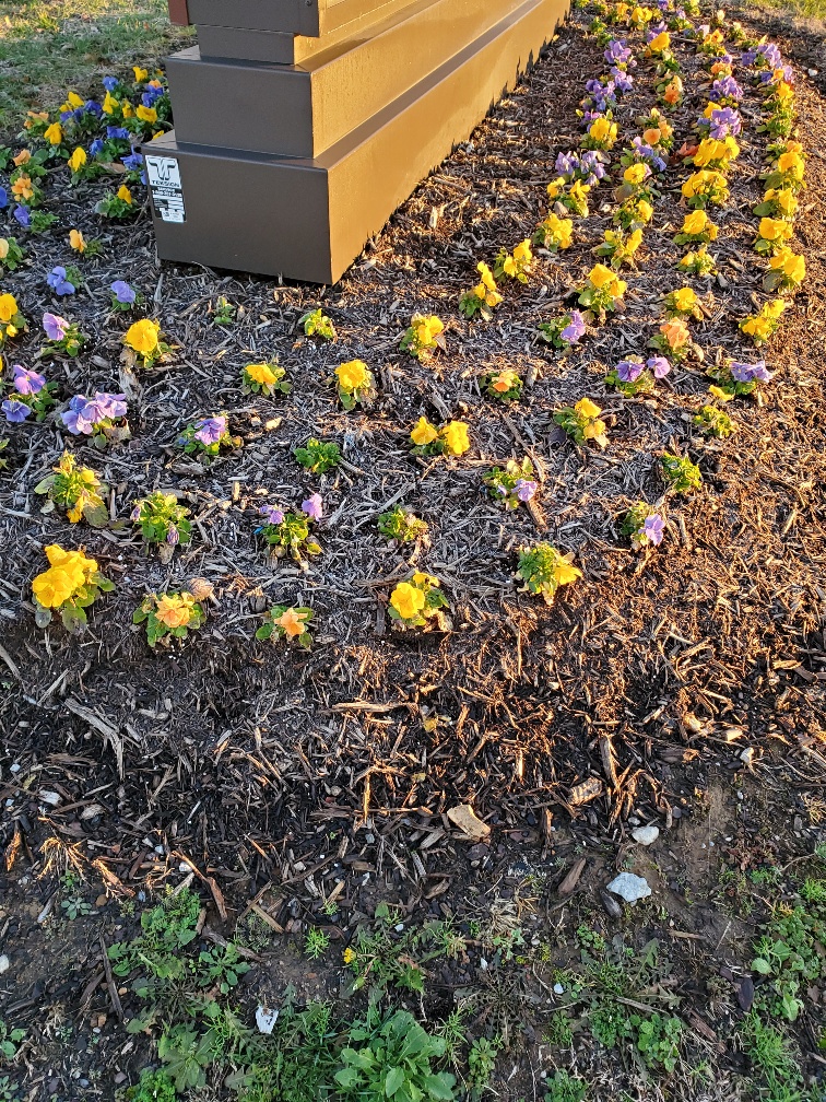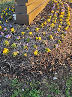 Next, I ducked into the parking lot of the hotel beside us and walked the perimeter of that hotel parking lot. Then I repeated that process several times to get close to 4,000 steps. The most interesting thing I saw???? These poor pansies.