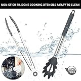 Stainless steel handle foood gade silicone made of foodgrade silicone safe for any type of food Firm silicone heads sturdy stainless control and fantastic grip premium quality heatresilient silicone heads designed to protect the nonstick surface of your precious pans This will keep your cookware safe from scratching bpa free No rust No breaking or bending No melting Not produce any hazardous fumesAnti scalding silicone handle sleeve protect your hand from burning