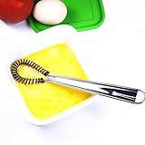 Food grade material this mini spring egg beater crafted by stainless steel with silicone coil durable and ecofriendly Functionable the small silicone whisk with a short flat handle it moves smoothly across edge of bowl and gets into the corners of a pot much more thoroughly hand crank mixer not only using as an egg whisk and great for whisking lumps out of smooth sauces and scrambling eggsergonomic flat handle is a secure grip for any mixing task